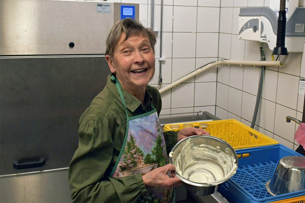 När de drog igång igen på Havsblick 2022 var Yvonne Svensson, 77, en av volontärerna. Hon var gäst på första gemensamma julen tre år tidigare, men kände att hon hellre ville hjälpa till. Det var i köket Hemmets Journal träffade henne.