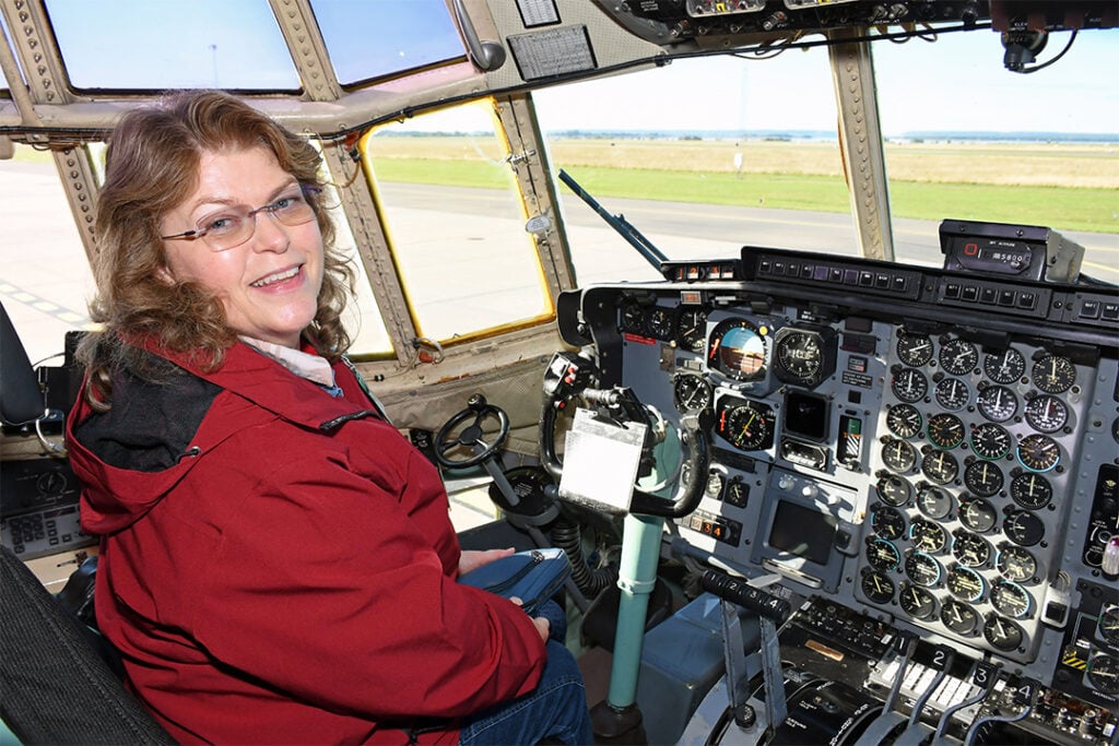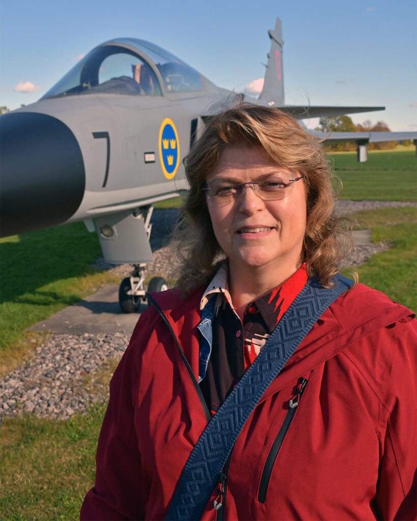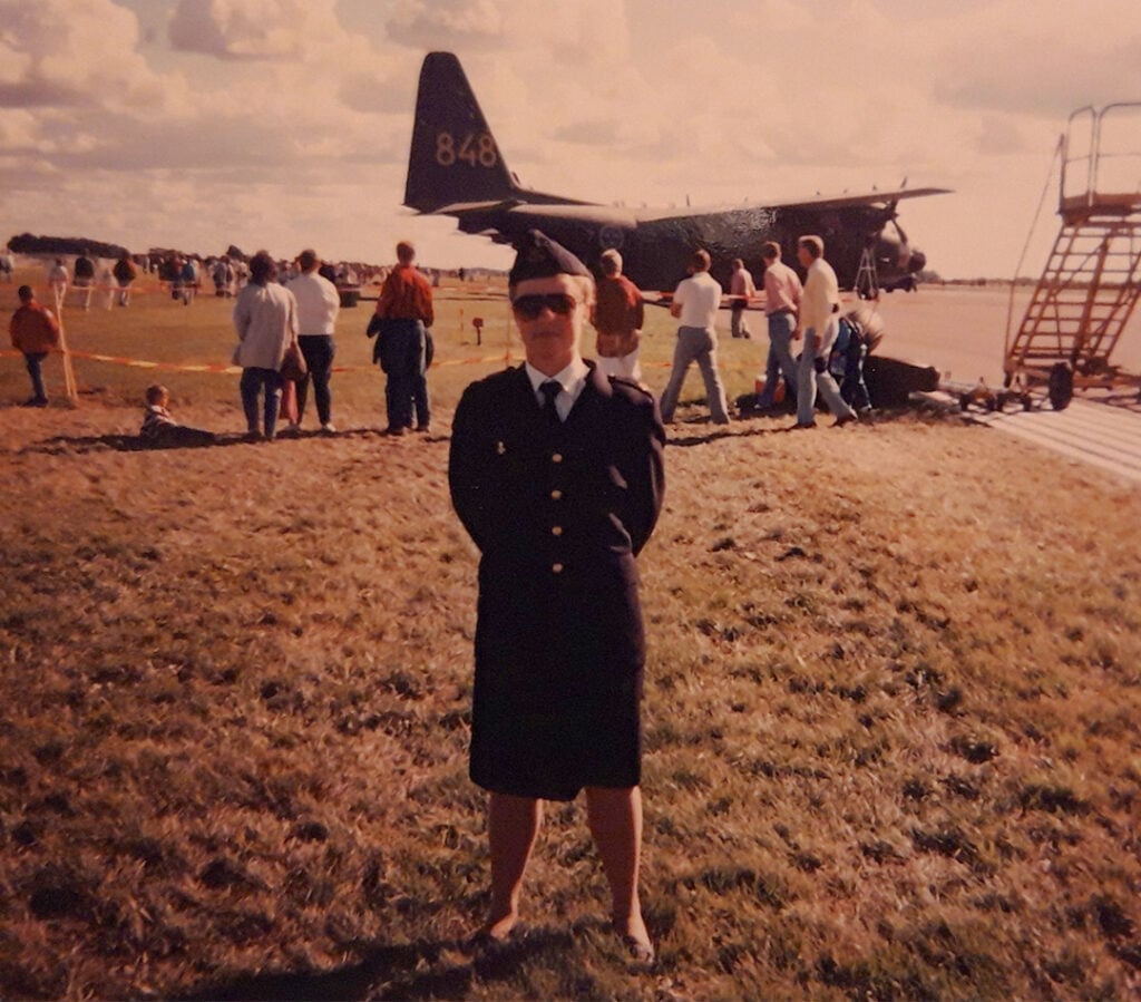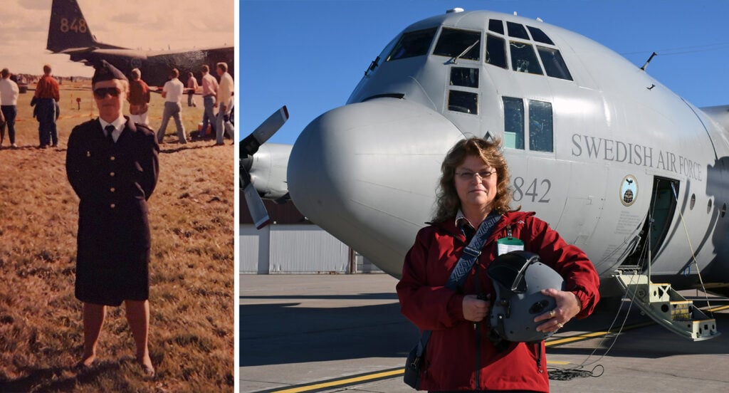 – Jag var nyutbildad flyglotta när den bilden togs framför en Hercules och jag tjänstgjorde inom luftbevakningen. Jag var en tornsvala som vi kallades.