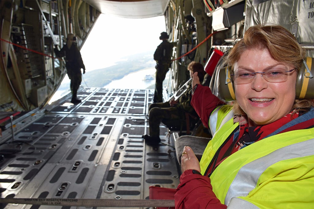 Men dagens höjdpunkt är utan tvekan besöket på Transportflyget och flygturen med en Hercules. Det flygplanet symboliserar på sätt och vis hennes tid som flyglotta, bland annat på grund av fotografiet från hennes 25-årsdag.