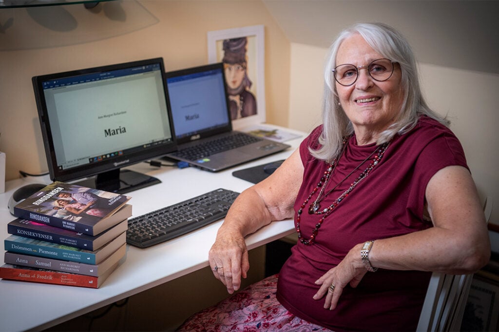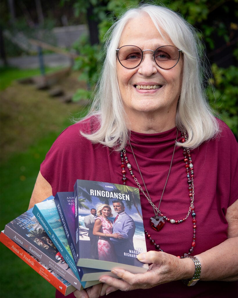 Vid datorn på övervåningen i villan i Sandviken har Ann-Margret Richardson fantiserat sig ända bort till Karibien. Mycket av dramatiken i hennes romaner utspelar sig även i Italien, där hon själv levde under många år.