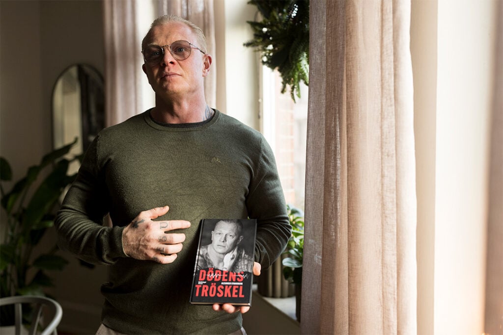 Alexander Strandberg håller sin nyutkomna bok Dödens tröskel i handen. Titeln är en klockren beskrivning av den subtila verklighet mellan liv och död som tidigare präglade hans leverne som tung drogmissbrukare och kriminell.