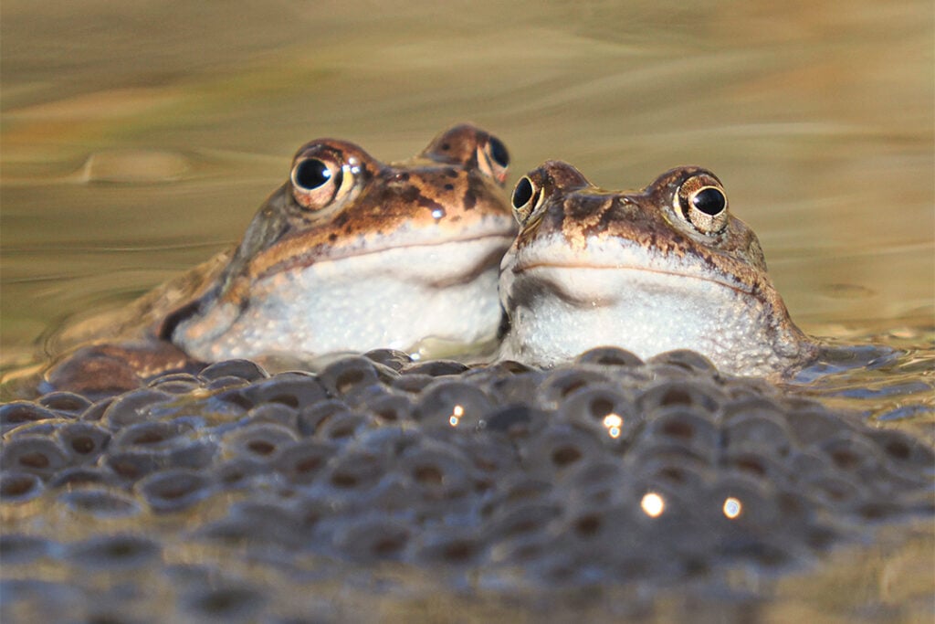 – Vi har en liten sjö med grodor en bit hemifrån. Där fångade jag ett par under parningsleken där hona och hane ser lyckliga ut där de sitter bland romkornen.