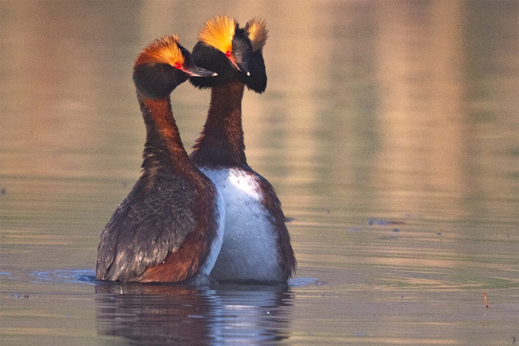 – Ett bra exempel är när jag fotograferar svarthakedopping på en golfbana i närheten av lantstället. Fåglarna finns vid banans vattenhinder tidigt på morgonen och jag ligger på ett liggunderlag intill dem. När objektivet är i jämnhöjd med fåglarna blir bilderna bättre.