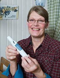 ![]() Ett klick med injektionspennan – så är medicinen fixad. Nu kan även de som drabbats av svår reumatism behandla sig själva hemma. |