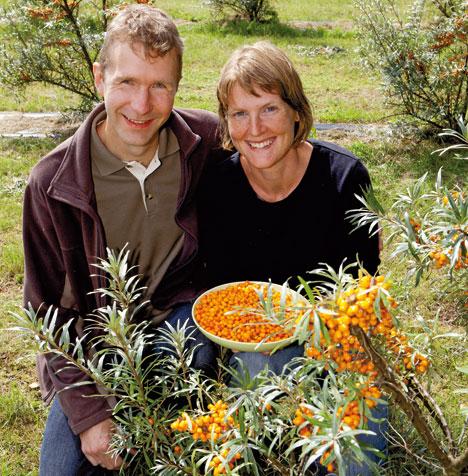 Havtornsodlarna Martina Olsson och Calle Laurén älskar det lilla gula och supernyttiga bäret.