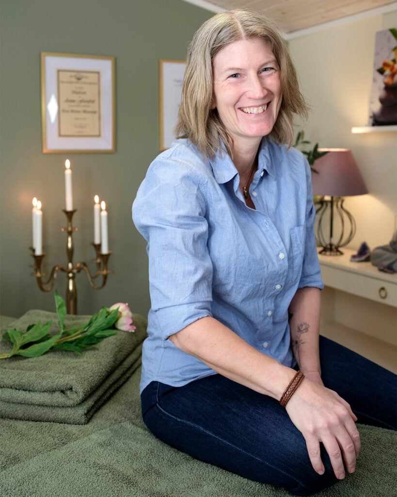– För några år sedan fick jag fibromyalgi, en inflammation i nervsystemet som påverkar bland annat muskler, leder och balans. På grund av den kan jag själv inte få en klassisk massage, då skulle jag bli dålig. Därför vill jag kunna erbjuda mjuka och lugna behandlingar som är bra för människor som lever med kronisk smärta, stress, oro eller ångest. Stress är ju en av de största folksjukdomarna som vi har i dag.