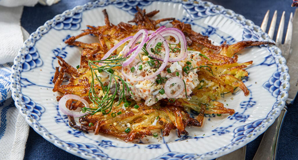 - Fördela rårakorna på tallrikar. Toppa med gubbröra. Garnera med rödlök, gräslök och dillvippor. Servera gärna citronklyftor vid sidan av.