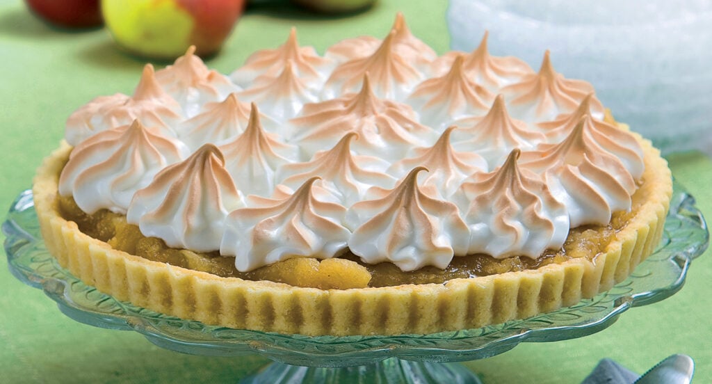 Äppelmarängpaj med smak av citron och ingefära