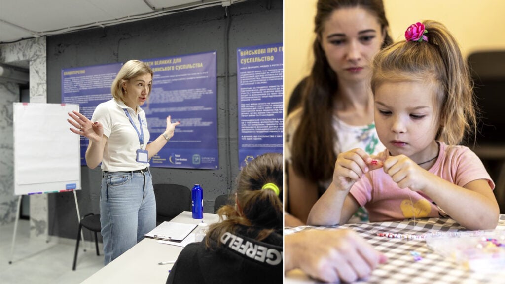 Pyssel och social samvaro skapar trygghet och ger mening för både barn och vuxna. Foto: Alina Zhuravel/ LWF Ukraine