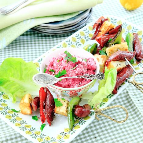 De ugnsbakade laxspetten som doppats i svarta och vita sesamfrön, serveras med squashsallad och japansk gari ? inlagd färsk ingefära.