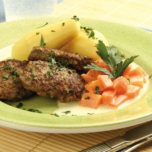 Du behöver 400 g potatis av mjölig sort 1 st ägg 1 st äggula 2 krm salt 1 dl ströbröd 1 msk matfett Servera med:…