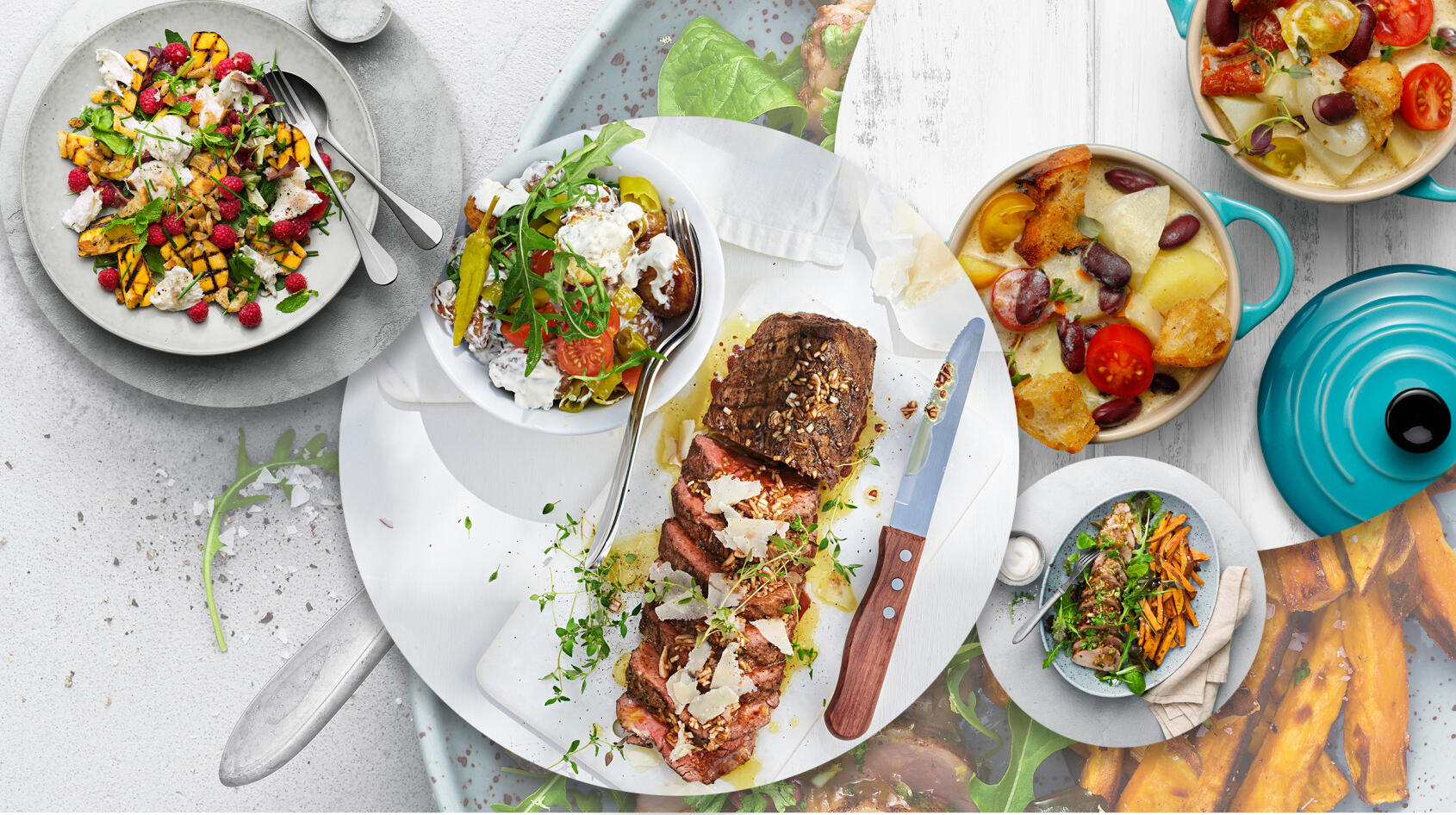 Saftig fläskfilé, krämig bearnaisesås och smakrik svamp vilar under ett fluffigt mos gjort på både vanlig potatis och sötpotatis. Hela middagen i en form!
