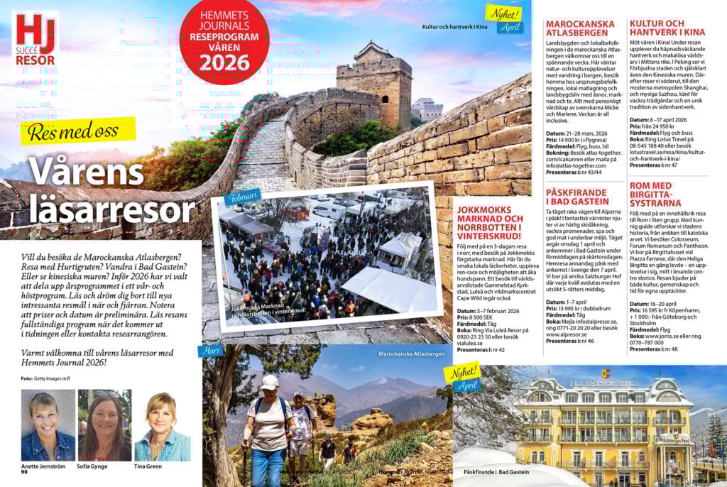 Vårt reseprogram för 2025 är vårt mest varierade och spännande någonsin! Här finns något för alla. Och kom ihåg: Du blir alltid lite extra omhändertagen på våra resor av våra populära reseledare Anette, Sofia och Tina!