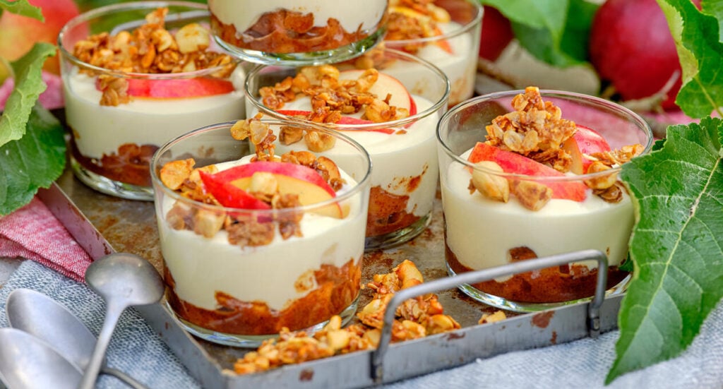 Vit chokladkräm med äppelcrunch