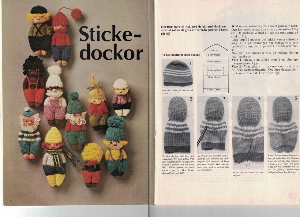 stickning. Teckningen visar hur många varv som behövs för skor, byxor, pullover, ansikte och mössa. Efter 8 v på mössan, maska av enligt följande.