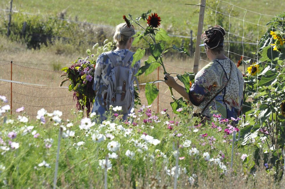 – Man blir kreativ att se så många blommor! Och så vill man ha fler, skrattar Johanna som är här och plockar tillsammans med dottern Julia efter att ha hört talas om odlingen på Facebook.