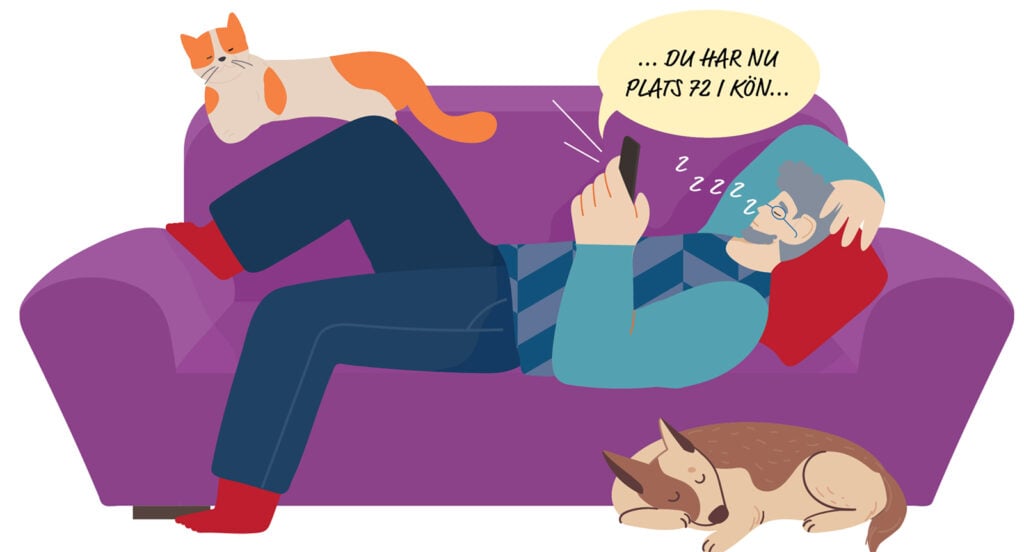 Först chatthänvisning till ”Mina sidor” på hemsidan, därefter önskan om personnummer (knappas in) och begäran om bank-id (avböjs). Så chattröst; ”Du har plats 71 i kön”. Men det är bra uppdaterat, och vart tredje-fjärde nummer i kön meddelas, med tillägget ”Tack för att du väntar!” Efter 28 minuter en ny röst som säger att ”många ringer.”