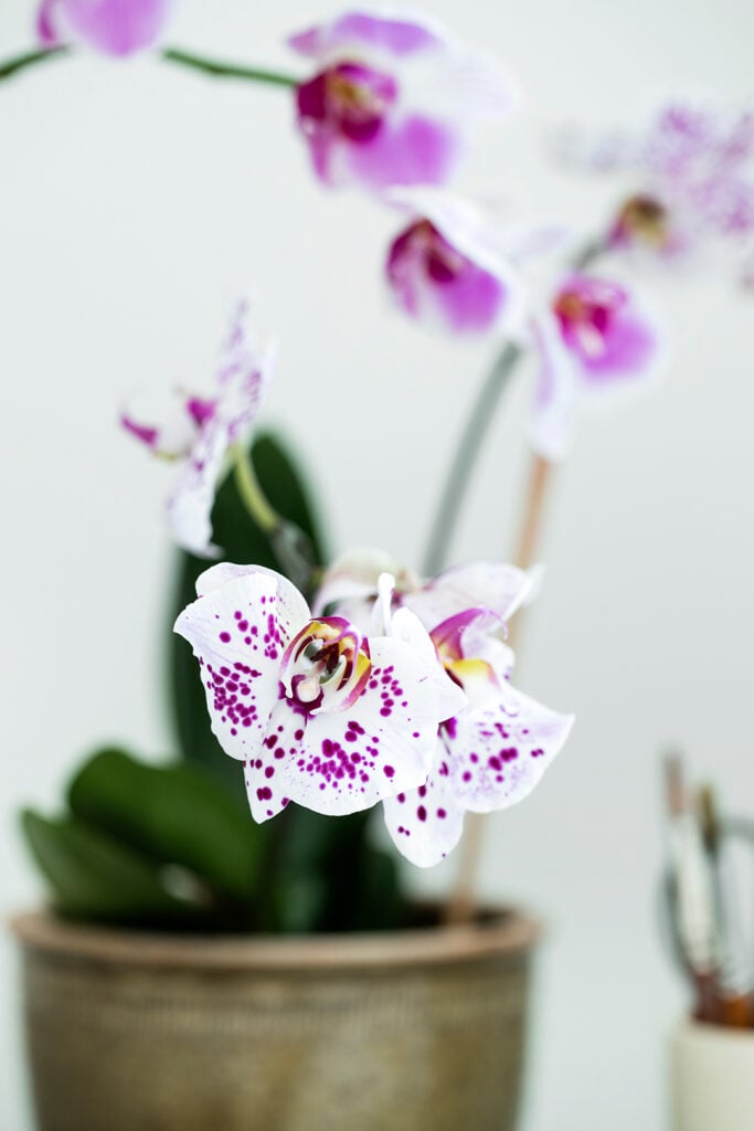 Om du haft din orkidé i flera år kan det vara dags att plantera om den på våren. Använd särskild orkidéjord och klipp tillbaka torra rötter. Då kan den sprida glädje med riklig blomning i många år.