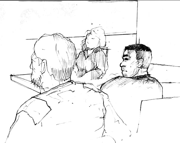 Men då och då är det en rättegångssal som är arbetsplatsen för dagen. Eftersom kameror inte är tillåtna är det Anders penna som ska ge en visuell bild av vad som hänt innanför dörrarna när lagens långa arm ska ta ställning.