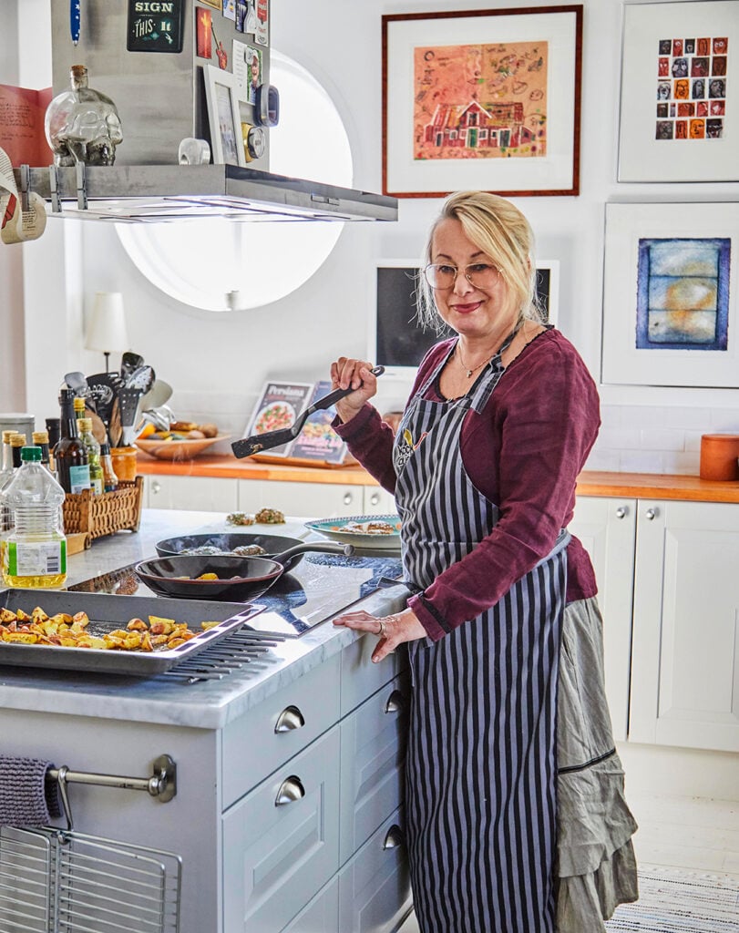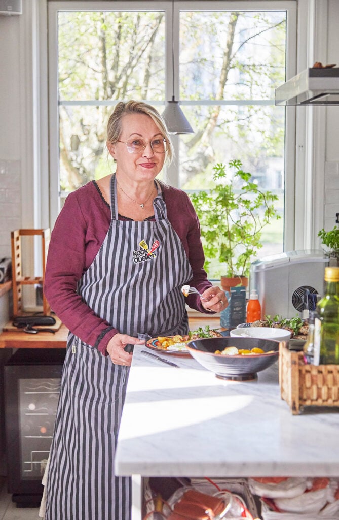 – Jag älskar att laga mat tillsammans med andra. Jag har samlat recept sedan jag var väldigt ung och har ärvt mammas pärm. Och jag har hur mycket kokböcker som helst. Jag får en ny i julklapp varje år av min bonusdotter Cornelia. Jag läser dem som porr.