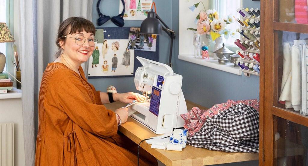 Hon började med att sy enkla barnkläder till Astrid. Sedan testade hon att göra en klänning åt sig själv. Med det blev sömnaden inte bara en form av mindfulness, som kunde dämpa ångest. Den blev också ett sätt att hantera synen på den egna kroppen.