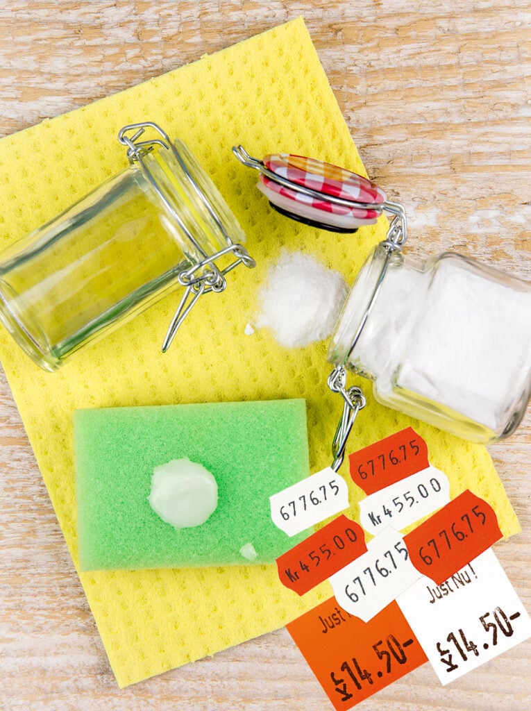 - Vit vinäger eller en blandning av tvålvatten och bakpulver.