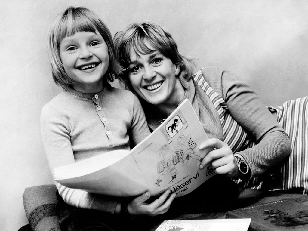 Siw Malmkvist växte upp i ett barnrike-hus i Landskrona tillsammans med sin pappa och mamma, Albert Malmkvist och Sigrid Lind, och sina åtta syskon. Här ses hon med dottern Tove någon gång på 1970-talet. Toves pappa är Siws förste make, den finlandssvenske musikern Lasse Mårtenson. Siw levde tillsammans med Fredrik Ohlsson fram till dennes död 2023. Tillsammans med har de en son, Henrik. Bilden på paret är från 1974.