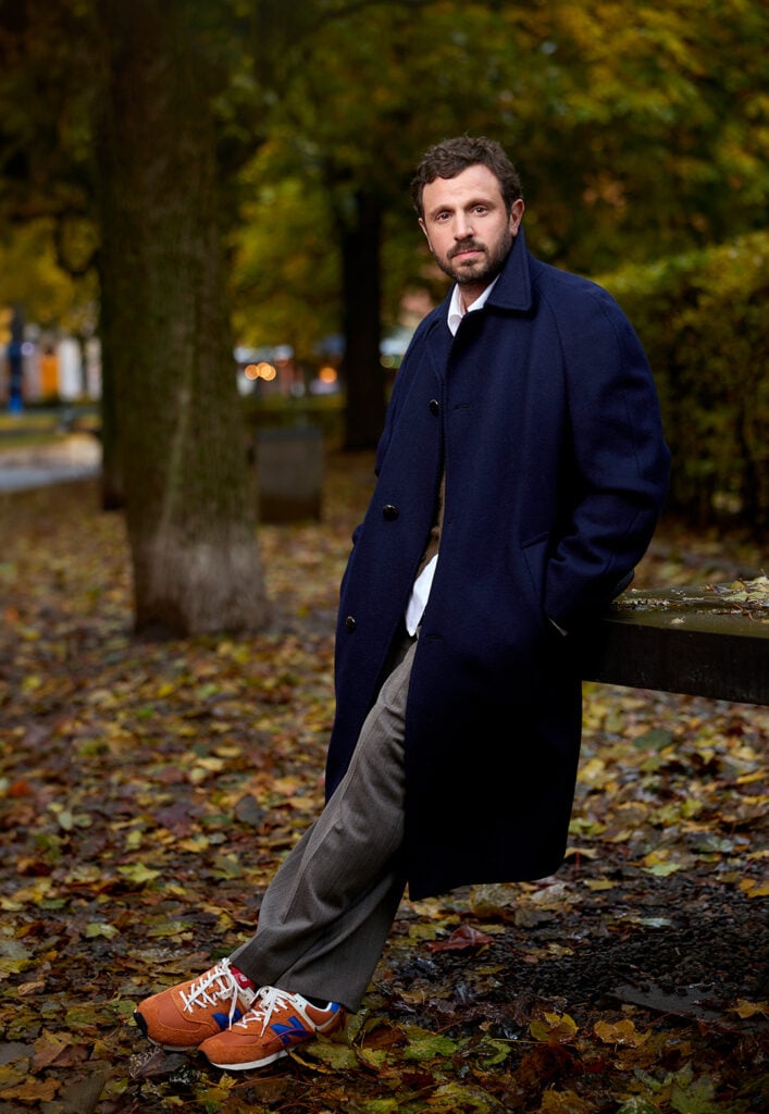 Vi ses i fotografens studio och Joel är klädd i vad som nästan skulle kunna vara en sorts terapi-kläder de luxe, en snygg yllekofta, välskräddade byxor och en elegant överrock. ”Jag har hjälp av en stylist”, erkänner han, trött på att grubbla över vad han skulle ha på sig vid det ständigt ökande antalet intervjuer i tv-soffor och tidningar.