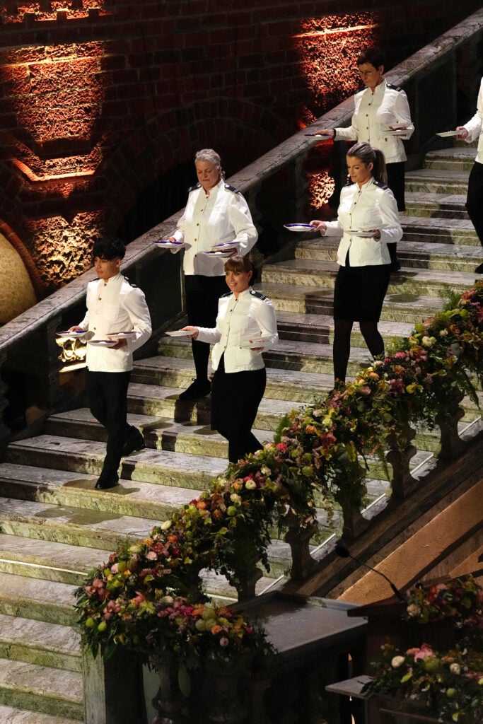 Hon konstaterar att middagen är en logistisk operation av rang. Två hundra servitörer från hela landet ansvarar för varsin grupp om tio gäster.