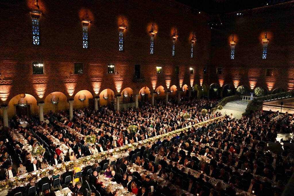 Numera kretsar nästan allt som har med Nobelveckan att göra runt just Stadshuset, som med sitt 106 meter höga torn prytt med de gyllene Tre Kronor nog måste vara stadens mest ikoniska silhuett. Byggnaden är ritad av arkitekt Ragnar Östberg och uppförd med åtta miljoner tegelstenar, och det är här den stora Nobelfesten äger rum varje år. Middagen serveras i Blå hallen, och sedan flyttas festligheterna till Gyllene salen, där 18 miljoner gyllene mosaikplattor skapar en glittrande kuliss för dans och fest. Arkitektens omsorg om detaljer märks till och med i trappstegen.
