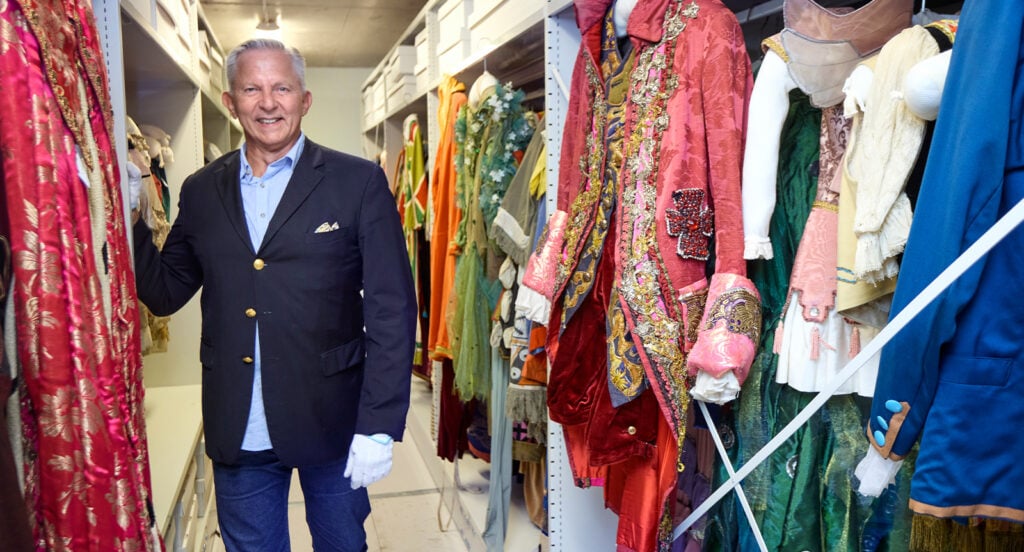 Nils-Albert Eriksson är en av dem som vårdar den unika samlingen. Här hänger de stora stjärnornas kläder – Birgit Nilssons cape som hon bar i sin favoritopera ”Tristan och Isolde” och Jussi Björlings jacka och trikåer från Don Juan. Operabalettens fjäderlätta tylltutuer samsas med blytunga guldskimrande herrefolksmantlar, och mängder av hattar, svärd, tiaror, skor och stövlar. Alla cirka 3 000 föremål finns noggrant beskrivna – i vilken föreställning de använts, årtal, vem som designat och vem som sjungit och agerat i kostymen.