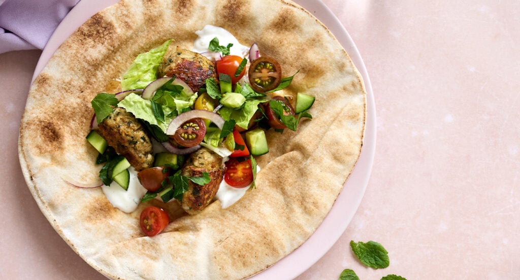 - Servera färsbiffarna med sallad, dressing och pitabröd