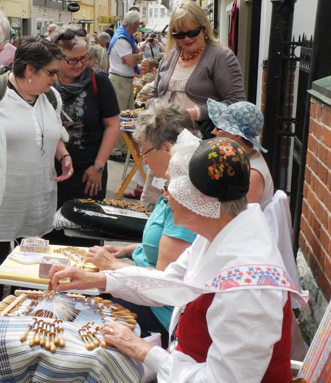– Det fanns stor variation i landet, och spetsmönstren hade många roliga namn som Tockaröva, Kråkskrammel och Kuppjerk. Och det var status bland rika bönder att äga exklusiva textiler, säger Tina Ignell som är hemslöjdskonsulent och redaktör för tidningen Vävmagasinet. Hon är fascinerad av knyppling.