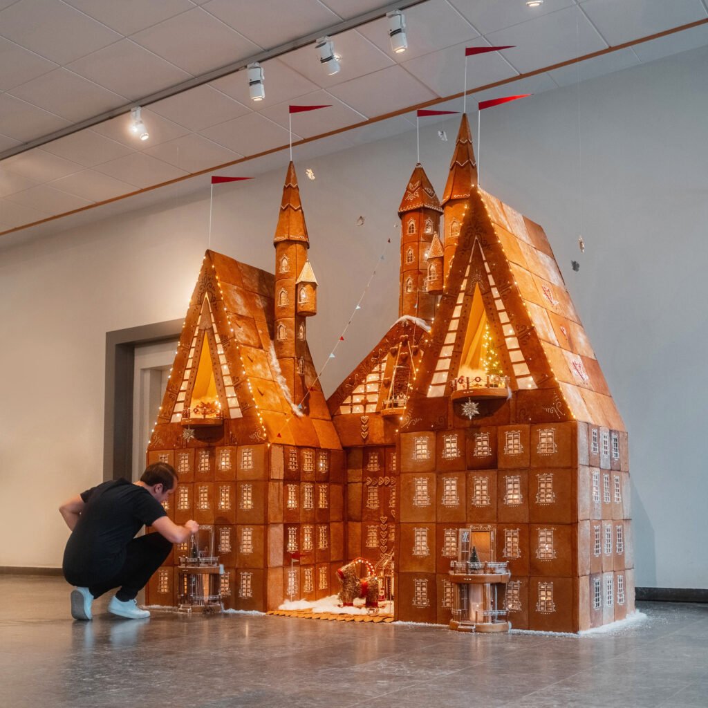 – Museet har en tradition att göra pepparkakshus inför jul, men i och med pandemin blev det uppehåll i två år och efter det stod de utan bagare. Vi hade gjort några samarbeten tidigare så de ringde och frågade om jag var intresserad. Då var det bara några veckor kvar till första advent så det huset hysterigjorde jag, berättar Erik Olof, som nuförtiden tar lite längre tid på sig.