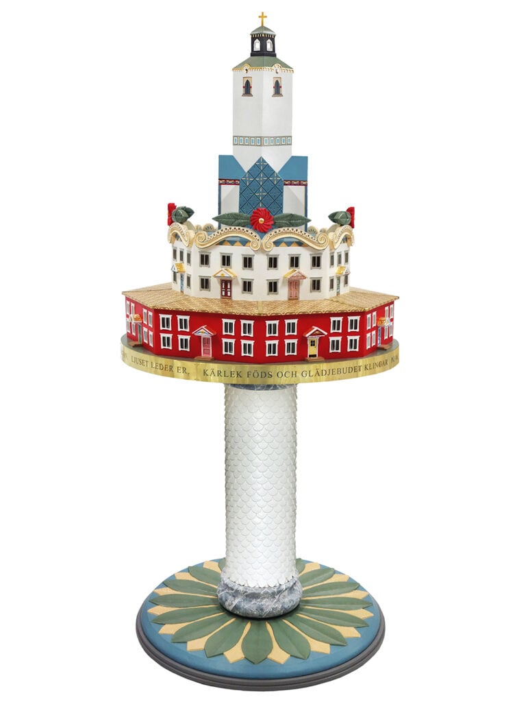 Fjolårets hus var ett bygge som nästan slog i taket på museet, med en höjd på 3 meter och 60 centimeter. Inspirationen då kom från Babels torn. I år har han valt en annan väg.