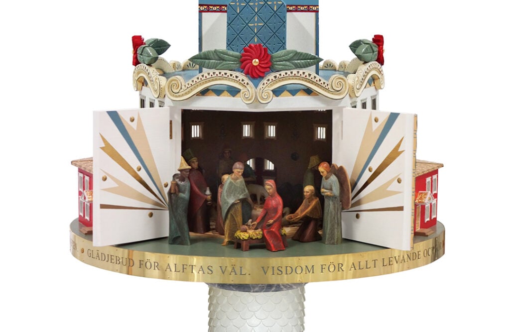 Han berättar att han hämtade inspiration från en tradition i Krakow – att göra detaljerade krubbor med den polska staden som förlaga. Han lade 750 timmar på att tälja fram en krubba där inspirationen till byggnaderna var hämtade från närområdet i Alfta. Den två meter höga krubban fyllde han sedan med saker från traktens invånare.