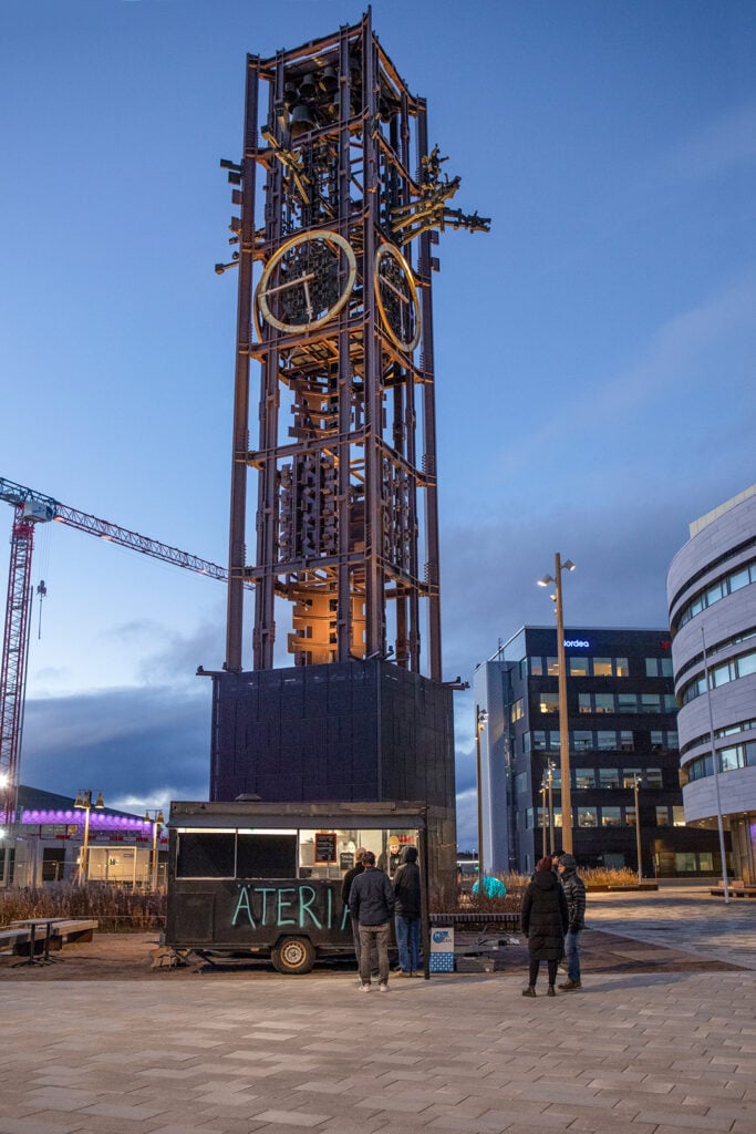 – Vi ska öppna Empes Diner någon gång efter nyår. Det ska bli skönt när allt är färdigflyttat, säger Mona. Det har varit helt otroligt att följa flytten av de gamla kulturbyggnaderna som fått ett nytt liv på sina nya platser. Klockstapeln som stod högt uppe på taket på gamla stadshuset står nu på marken intill det nya stadshuset som ett monument över det gamla Kiruna.