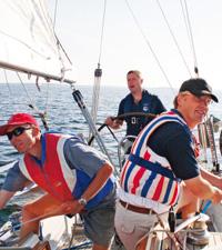 Magnus och Olof nickar och lovar varandra att göra just detta. De tre männen i en segelbåt ser redan fram mot nya härliga sommarupplevelser och hemligheter under nästa semesters skärgårdsseglats.