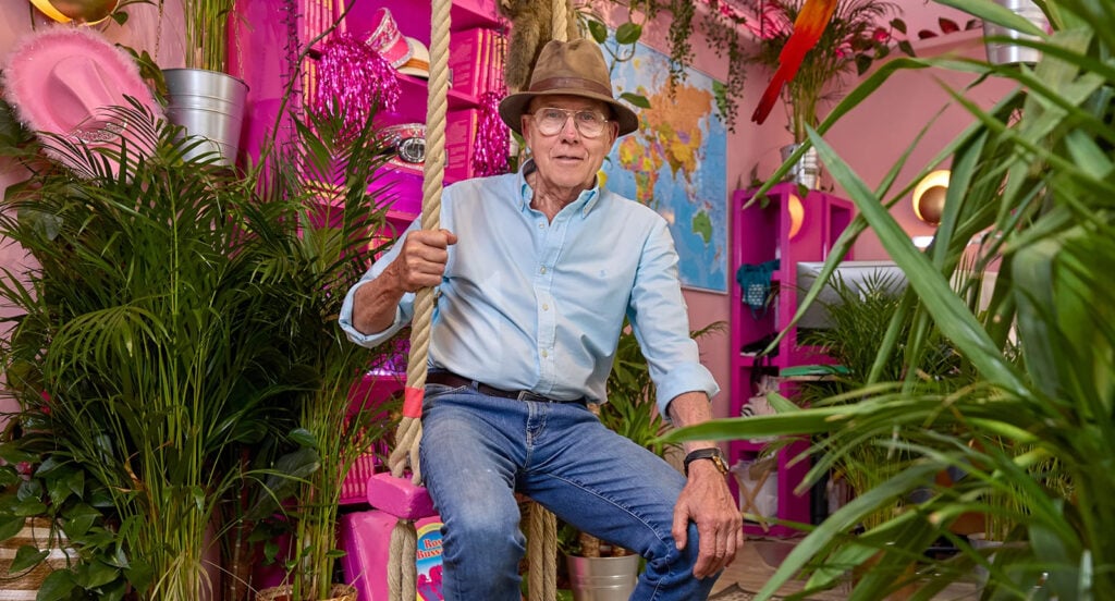 – Jag har inte hunnit känna efter, säger han med ett snett leende när vi träffas på Rosa Bussarnas kontor i Vasastan i Stockholm. Själv bor Anders i samma hus, fem våningar upp. Men större delen av sin vakna tid spenderar han i den lilla djungel som utgör kontoret.