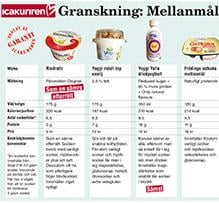 – De flesta av dessa mellanmål innehåller väldigt mycket socker. Yoghurt och kvarg smakar naturligt surt och syrligt. För att få dessa mellanmål att smaka sött, som de oftast gör, behövs massor av socker.