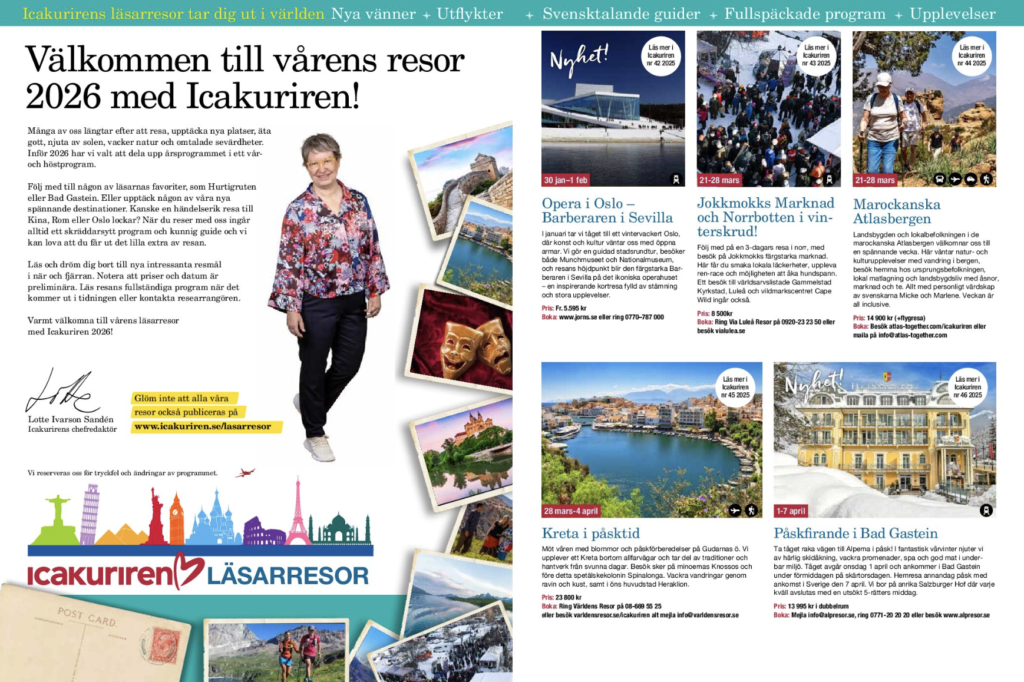 Många av oss längtar efter att resa, upptäcka nya platser, äta gott, njuta av solen, vacker natur och omtalade sevärdheter. Under 2026 erbjuder Icakurien utvalda resmål, populära favoriter i repris såväl som nya spännande destinationer.