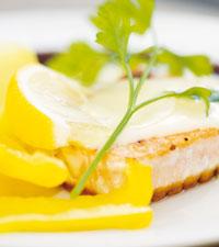 Ugnsstekt rostasfilé med bacon och ärtskottssallad
