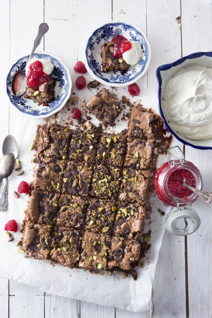 Chokladbrownie med sylt och grädde