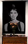 På en frisörsalong i Malmö hänger Åsas version av Audrey Hepburn. Foto: Gugge Zelander