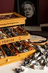 Färgskalan är monokrom, men säger ändå allt. Det gamla garnskrinet är hennes målarpalett. Foto: Gugge Zelander