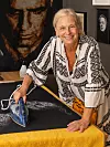 Åsa Weiland broderar mer än gärna sina egna husgudar och -gudinnor i jätteformat. I bakgrunden syns bland annat Marlon Brando, Nina Simone och Ernst-Hugo Järegård. Foto: Gugge Zelander