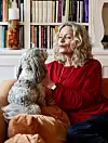 Familjens hund Eliot håller sig nära Åsa under intervjun. ”Han vill dominera lite, men det får han inte.” Foto: Emma Shevtzoff