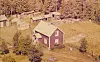 Bi tar fram ett gammalt flygfoto av ett litet rödmålat torp med små bodar och dass.