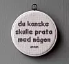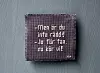 – Inspiration till texterna hämtar jag överallt – från situationer på stan, från film eller böcker. Men åtminstone femtio procent av mina broderade budskap kommer nog ändå från när jag får fatt på mina egna tankar.