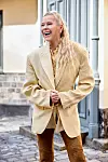 – Min äldsta son Adam bor i Australien, jobbar som grafisk formgivare och ska få sitt andra barn i höst. Hans lillebror Simon är låtskrivare och väldigt modeintresserad. Vi brukar gå på stan och kolla på kläder ihop. När Simon som elvaåring kom till mig i ateljén efter skolan designade han ett kors som vi fortfarande säljer. Så det är väl kanske han som skulle ligga närmast till hands att ta över en dag. Men än så länge tycker jag det är skönt att vara ”woman boss”. Jag älskar mitt jobb! Att gå i pension finns inte på kartan för mig.